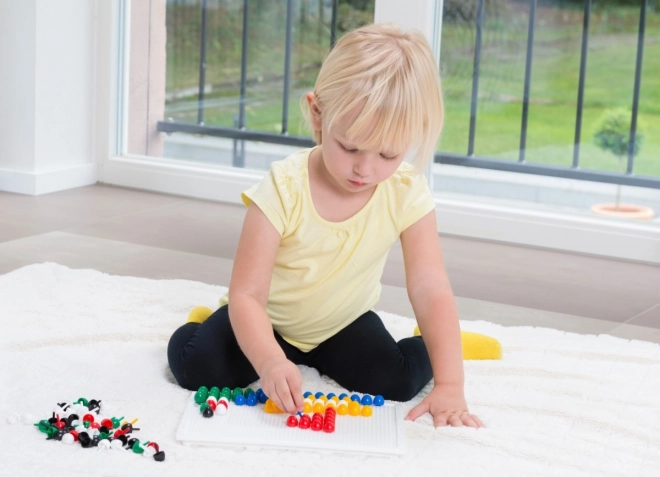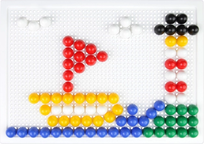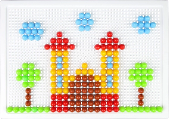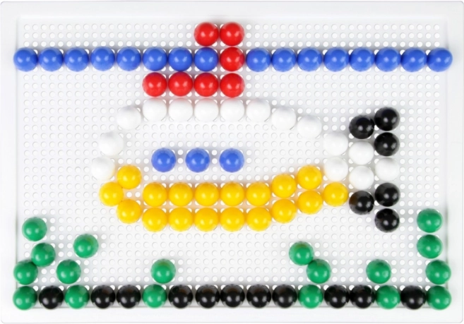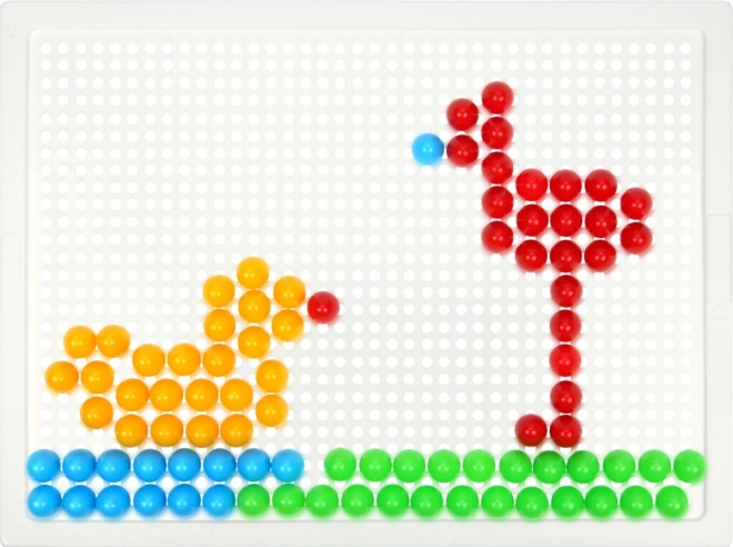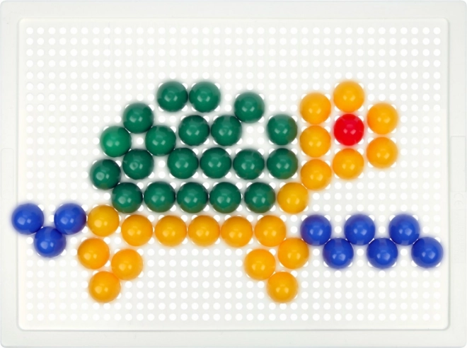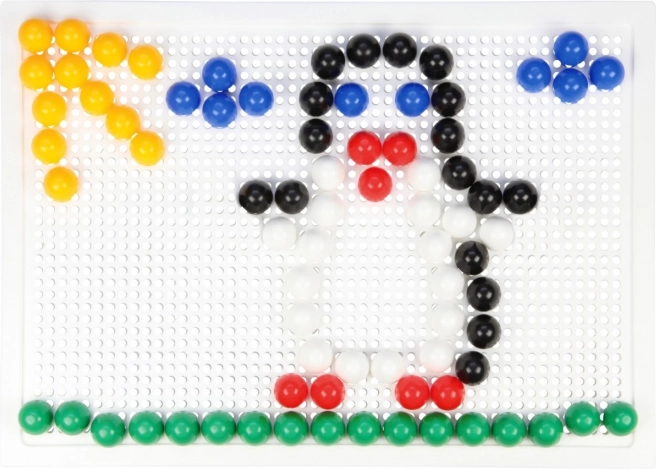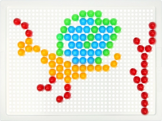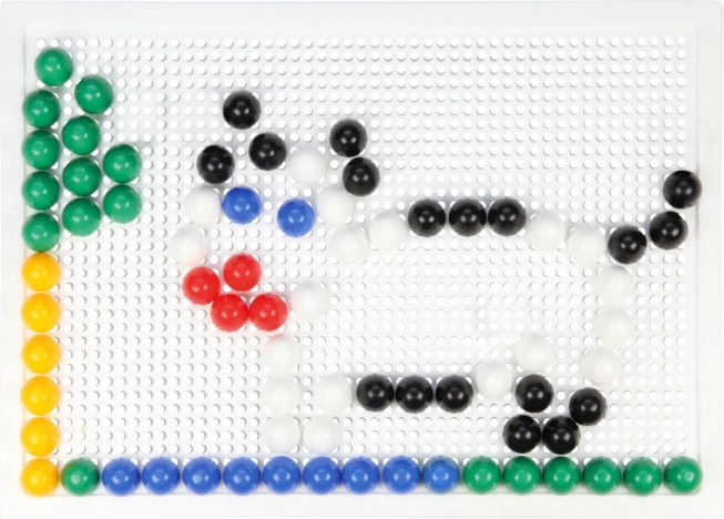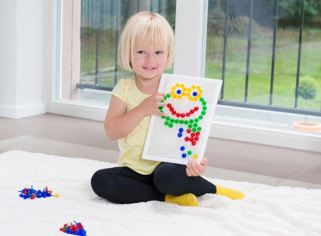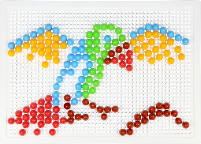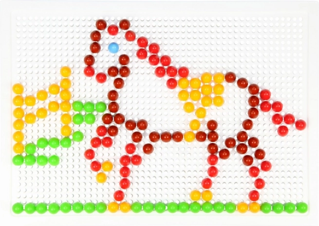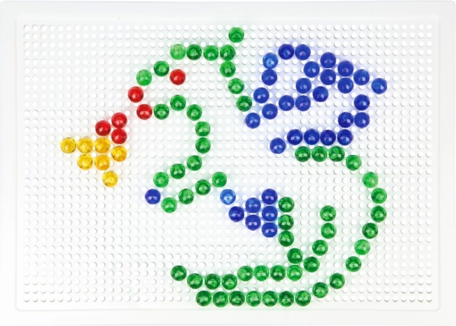 В комплекта ще откриете здрава пластмасова решетка с размери 21 × 16 cm и 140 габърчета с диаметър 10 mm – точно за детска ръчичка. Мозайката не съдържа шаблони, което естествено насърчава свободната креативност и самостоятелното измисляне на мотиви.