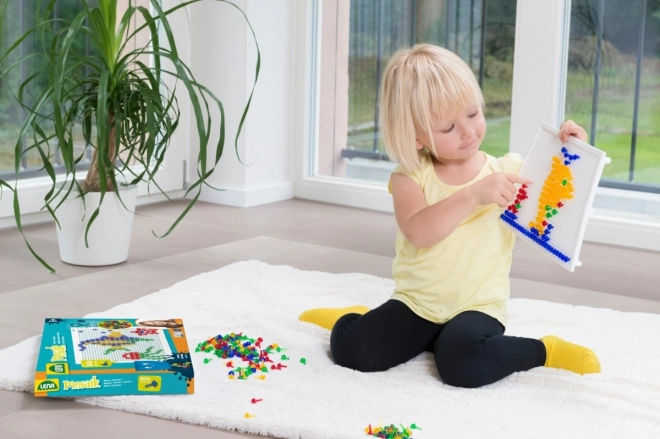 Открийте креативно забавление с мозайката с габърчета LENA, която развива фината моторика, фантазията и креативността. Децата могат от цветни кристалови габърчета да подреждат безброй мотиви върху решетъчна подложка и да създават отново и отново.