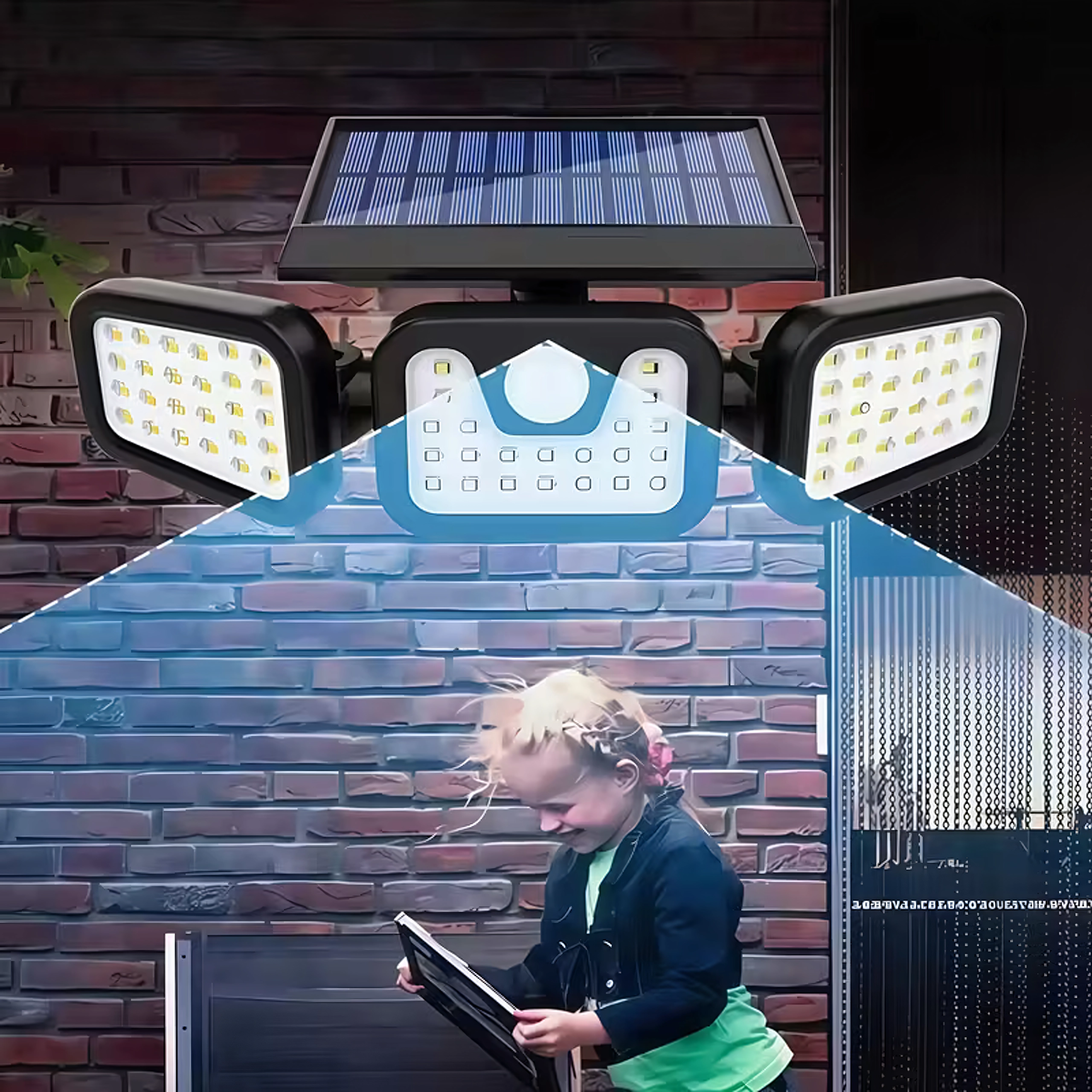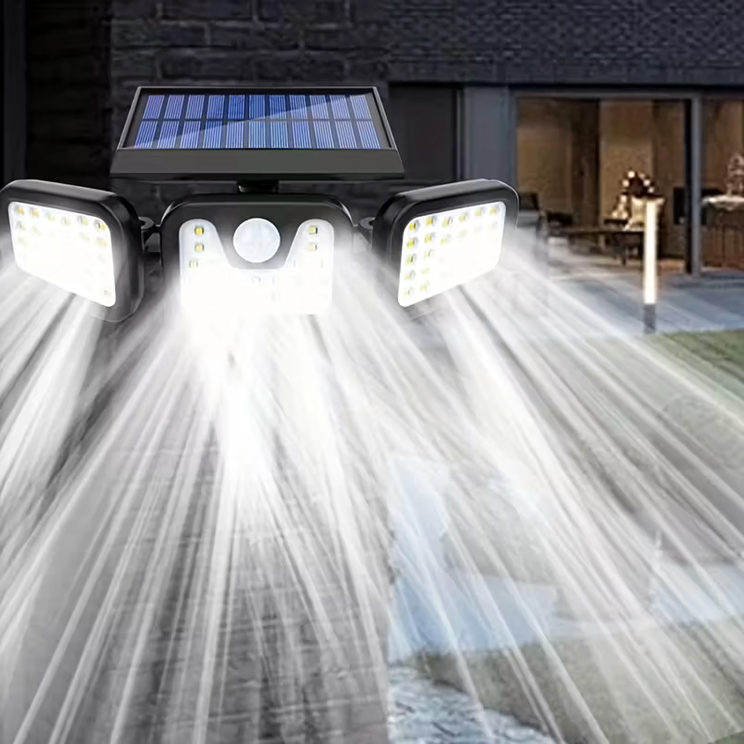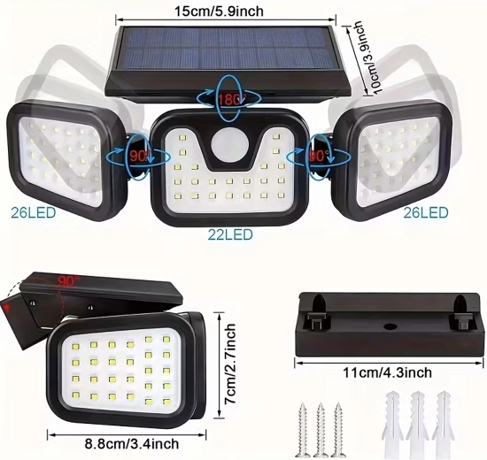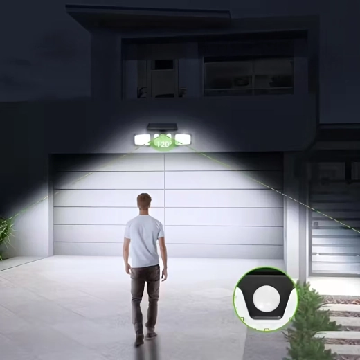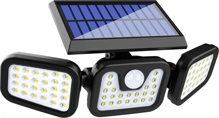 Умно соларно LED осветително тяло с три регулируеми панела равномерно осветява широка площ и повишава безопасността около дома. Безжична инсталация без необходимост от електрическо захранване, автоматично включване при здрач или при засичане на движение и дълъг живот на батерията го правят идеален избор за входове, гаражи, градини и дворове.