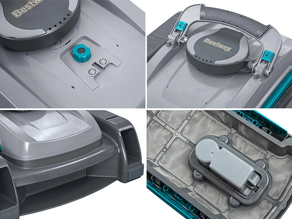 Умните водни сензори активират робота при потапяне и го изключват при изваждане от водата, като по този начин защитават двигателя. Бързо зареждане 3–4 часа и безжичен дизайн осигуряват пълна свобода на движение. Контейнерите с голям обем задържат листа, пясък и насекоми и се почистват лесно чрез филтъра с достъп отгоре.