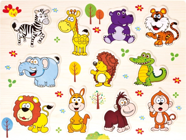 Тази голяма дървена мозайка с животни от сафари ще очарова малките откриватели. Цветните вложни елементи се държат лесно и помагат на децата да тренират моторни умения и логическо мислене. Стабилната дървена дъска запазва формата и осигурява удобно подреждане.