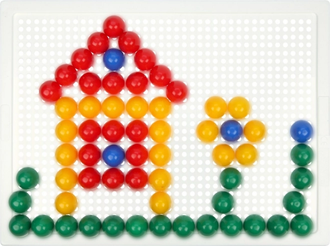 Класическата шипова мозайка LENA предлага безкрайни възможности за подреждане. Децата могат да създават прости и детайлни мотиви от цветните щифтове, като тренират концентрация, координация око–ръка и възприятие за цветове.