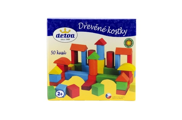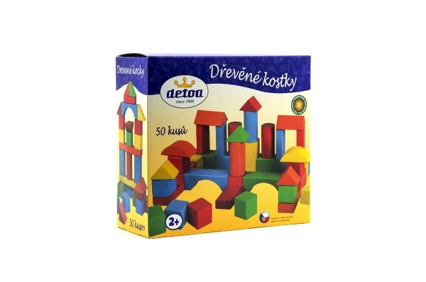 Цветният дървен конструктор съдържа 50 качествено обработени кубчета в различни форми за малки строители. Подпомага фината моторика, креативността и пространственото въображение. Произведен от безопасно дърво, отговаря на нормите на ЕС и е подходящ за деца от 2 години.