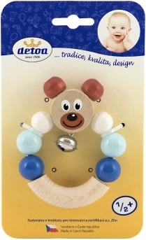 Дрънкалката Detoa със синьо мече е идеалната първа играчка за развитие на сетивата и моториката. Благодарение на приятното звънене на звънчалката мотивира бебето да хваща и изследва, докато гладките дървени части предлагат приятен естествен допир. Качествената изработка и безопасните материали гарантират спокойно ежедневни игри.