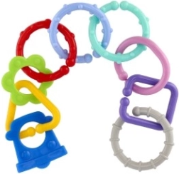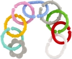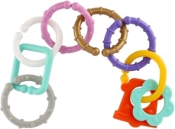 Пъстроцветни свързващи рингове и форми за деца от раждането, които комбинират свързване и дрънкалка в едно. Издръжлива пластмаса, лесно свързване и лека конструкция подпомагат фината моторика, сръчността и логическото мислене. Визуално и тактилно стимулираща играчка за повтарящо се забавление у дома и по време на път.