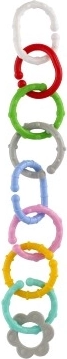 Този комплект от цветни рингове и форми е проектиран за най-малките. Благодарение на различните цветове, форми и текстури децата естествено развиват сетивното възприятие и координацията ръка–око. Отделните елементи се свързват лесно и стоят стабилно, така че децата могат да създават свои собствени вериги или да прикрепят играчки към детската количка или столчето за кола.