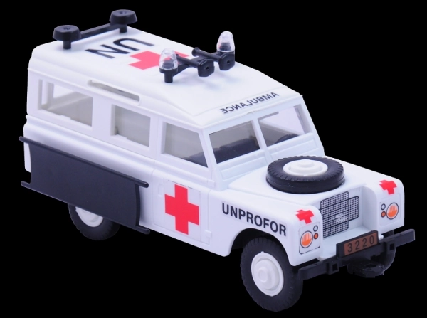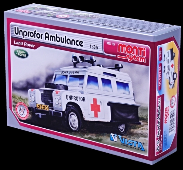 Конструкторът Monti System предлага автентичен модел на санитарен автомобил UNPROFOR на база Land Rover в мащаб 1:35. Частите пасват прецизно, затова моделът се сглобява без лепило и без необходимост от боядисване. Получава се чист и здрав модел, подходящ за игра и колекция.