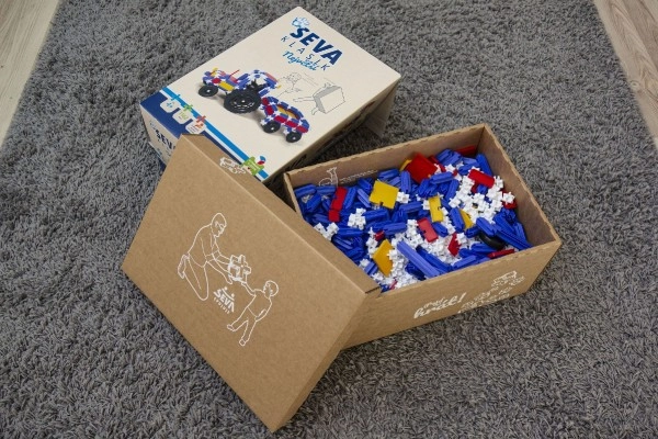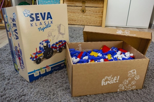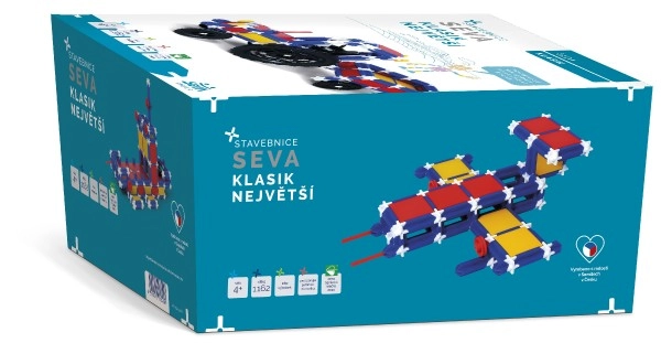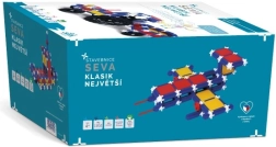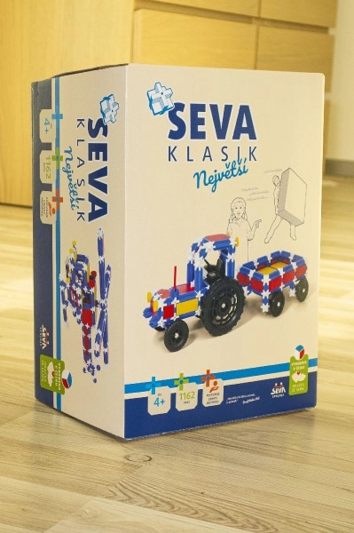 Строителният комплект SEVA Classic Най-голям предлага наистина богата доза забавление и развитие на умения. Благодарение на 1162 здрави пластмасови части ще построите всичко – от прости модели до сложни конструкции. Модулната система е съвместима с всички комплекти SEVA, така че можете постоянно да разширявате своята колекция и да създавате по-големи проекти.