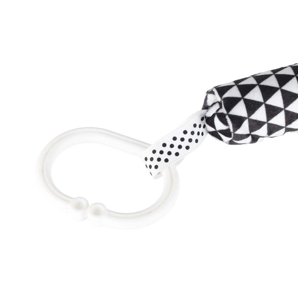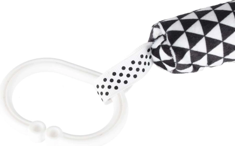 Практичната щипка/пръстен позволява бързо закачане към дръжката на количката, столчето за кола или ръба на кошарата. Играчката остава винаги под ръка.
