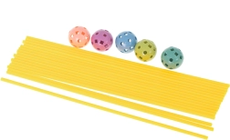 Открийте магията на креативното строене с нашия страхотен строителен сет, който позволява на децата да изграждат широка гама от структури като шатри, бази или дори кучешки колиби! Сетът съдържа 75 части, включително 51 жълти пръчки и 24 разноцветни свързващи топки, които предоставят безкрайни възможности за строене.
