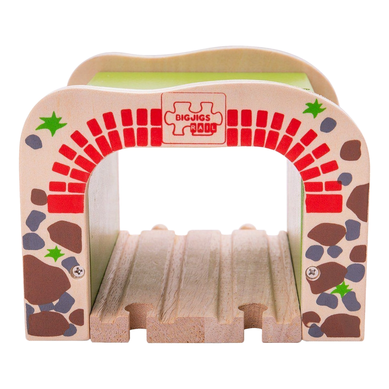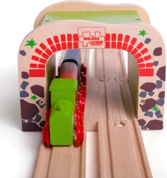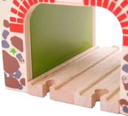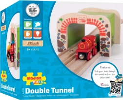 Дървеният двоен тунел BIGJIGS RAIL внася повече действие и по-плавно движение в света на дървените железници. Благодарение на двурелсовото преминаване едновременно могат да минават два влакчета, което насърчава съвместната игра и развитието на координацията. Здравата конструкция и атрактивният мотив на тухли и камък придават реалистичен вид на трасето.