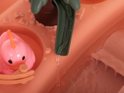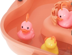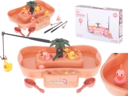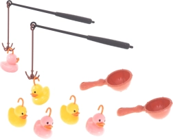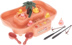 Превърнете всяка игра „лов на патенца“ във весело предизвикателство. Комплектът съдържа басейнче с остров, 5 патенца, 2 въдици и 2 кепчета, така че децата да се наслаждават както на състезание, така и на самостоятелна игра. Благодарение на приятните цветове и подвижните елементи играта естествено развива наблюдателност и сръчност.