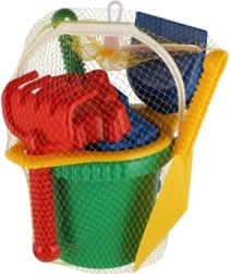 Този пластмасов комплект за пясък включва разнообразни инструменти и форми за страхотно строене и творчество. Благодарение на практичната опаковка в мрежа с размери 20x28x12 cm можете лесно да пренасяте целия сет.
