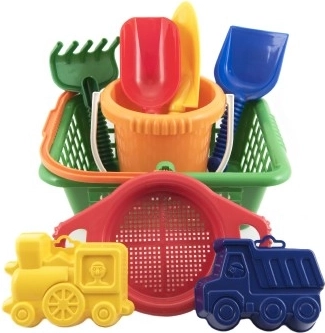 Кошничката побира всички части от комплекта, така че след игра бързо са прибрани и готови за следващи приключения. Чудесен помощник за пясъчника, градината и ваканцията.