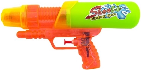 Този лек и издръжлив воден пистолет е създаден за летни игри. Достатъчно е да напълните резервоара, да се прицелите и да се насладите на освежаващата водна струя. Благодарение на компактния размер от 24 см се държи удобно и от по-малки деца и лесно се носи в парка, до водата или на почивка.