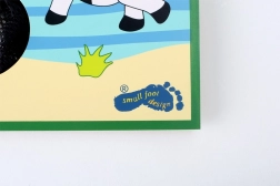 Игралната дъска с цветни илюстрации на животни и цветните торбички правят играта атрактивна и забавна за децата.