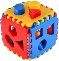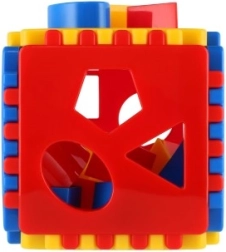 Пъстър куб за вграждане с отделящи се стени, който подпомага фината моторика, разпознаването на форми и търпението. Благодарение на здравата пластмаса и заоблените ръбове е безопасен за деца от 6 месеца. Кубът може лесно да се разглобява и сглобява отново, което предлага повече начини за игра и учене.
