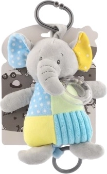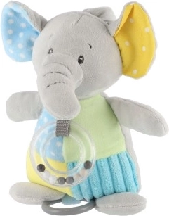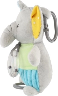 Перфектен игрален спътник за кошара или количка благодарение на безопасната щипка, която позволява лесно закачане. Текстурираната повърхност на слончето насърчава тактилното изследване, а цветният дизайн привлича вниманието на детето.