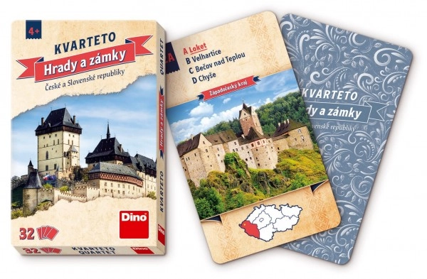 Произведена с внимание в Чешката република, играта Квартето Крепости и замъци предлага качествен игрови опит за деца. Комплектът съдържа 32 карти, които са поставени в практична картонена кутия, както и упътване за употреба.