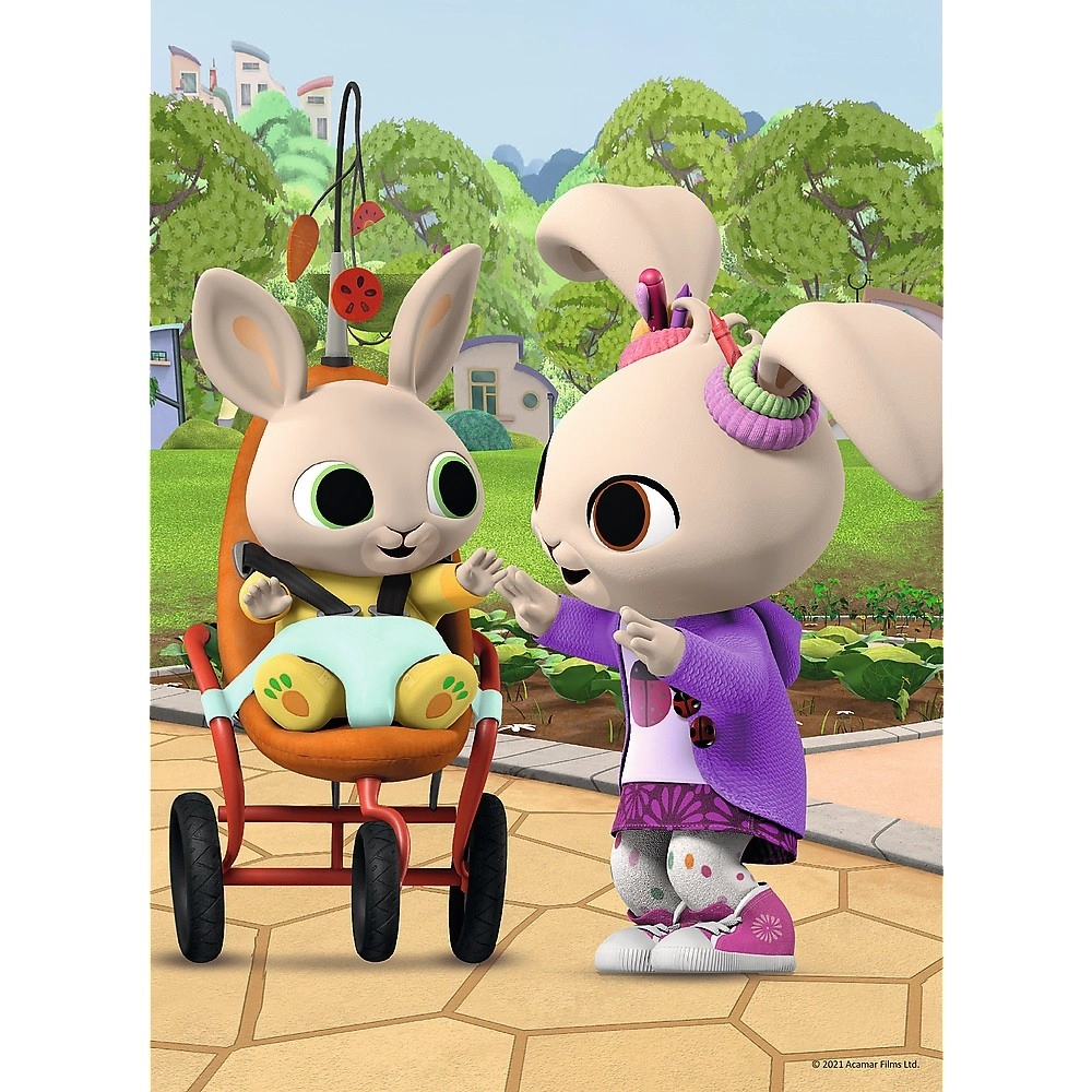 Търсите първи пъзел за малки почитатели на сериала BING? Тази мини макси сглобка с големи, здрави части е отличен избор. Децата могат да избират от 4 сладки мотива и по време на подреждане тренират концентрация, координация око–ръка, както и възприятие за форми и цветове.
