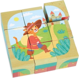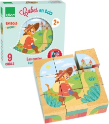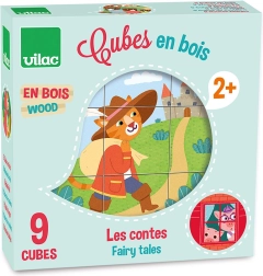 Дървените кубчета Vilac Приказки носят на децата радост от откриването и подреждането. От девет здрави кубчета се сглобяват шест различни приказни мотива, които развиват въображението и учат децата на съсредоточаване. Благодарение на здравото дърво и качествения печат играчката е издръжлива и подходяща за ежедневна игра.