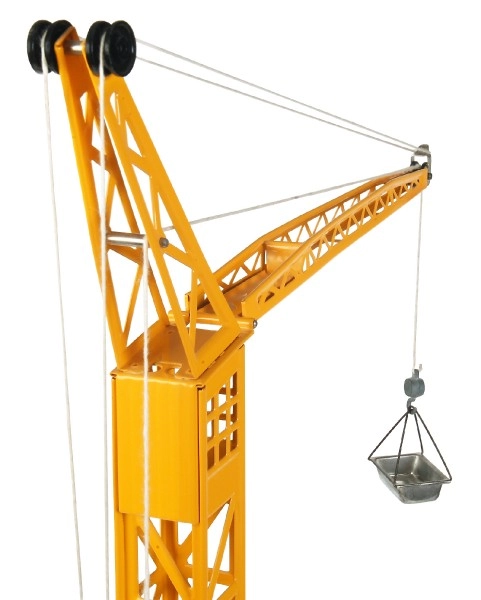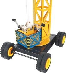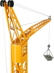 Кранът е оборудван с кула, която може да се върти, плъзгащо се рамо и система за повдигане на товари. Особено ще ви зарадва ръчната манивела, която позволява на децата да тренират моторни умения и координация на движенията. Дължината на рамото е 25 cm, а целият кран е висок 50 cm.
