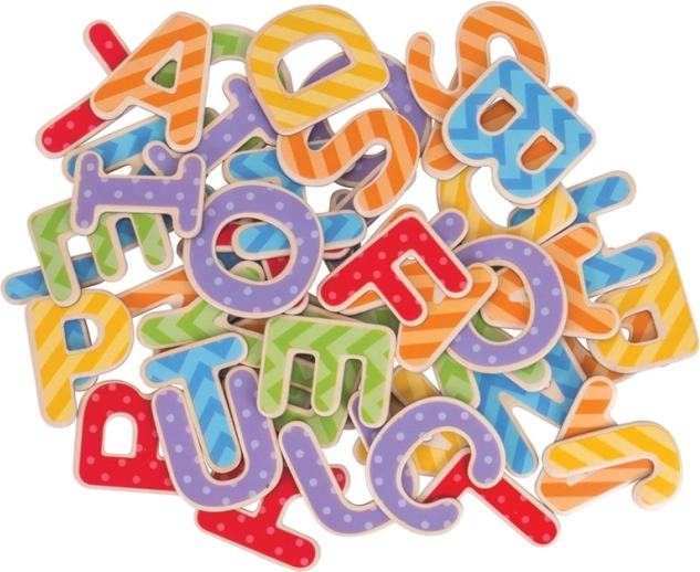 Този комплект магнитни букви от Bigjigs Toys е отличен инструмент за развитие на правописните умения и креативността на децата. В опаковката ще намерите 48 бр. цветни букви, които могат да бъдат поставяни върху магнитни дъски, като по този начин подпомагат разпознаването на отделните знаци и съставянето на думи. Изработени от качествено дърво, всяка буква има уникална шарка, като райета или точки, за да бъде ученето визуално привлекателно.