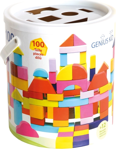 Този богат комплект дървени блокчета в нови цветове предлага на децата безкрайни възможности за строене на кули, мостове и семпли конструкции. Практичната опаковка в картонена кофичка улеснява съхранението и пренасянето, а капакът с отвори функционира като форма за сортиране за упражняване на логика и търпение.