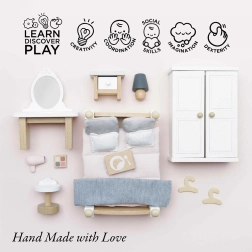 Le Toy Van представя комплект за спалня, който внася елегантност и комфорт във всеки дом за кукли. Игривият, мечтателен свят на детското въображение с този комплект се превръща в реалност.