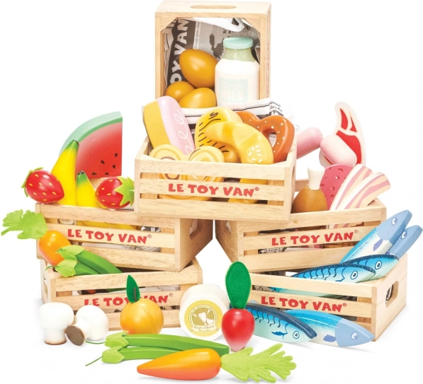 Дървената щайга с месни изделия Le Toy Van предлага перфектен начин да се запознаят децата с различните храни и значението на балансираното хранене. Съдържа:
