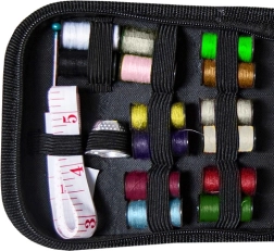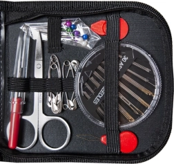 Включва най-необходимите инструменти като метър лента, ножички, игли и карфици, идеални за бързи поправки и креативни проекти.