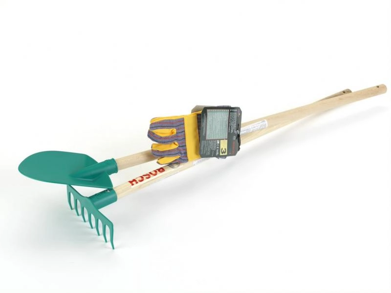 Открийте висококачествения комплект градински инструменти BOSCH за деца, проектиран да имитира безопасно и реалистично истинските инструменти. Благодарение на здравите дървени дръжки и леките пластмасови части, инструментите са удобни за детската ръка и насърчават активната игра в градината.