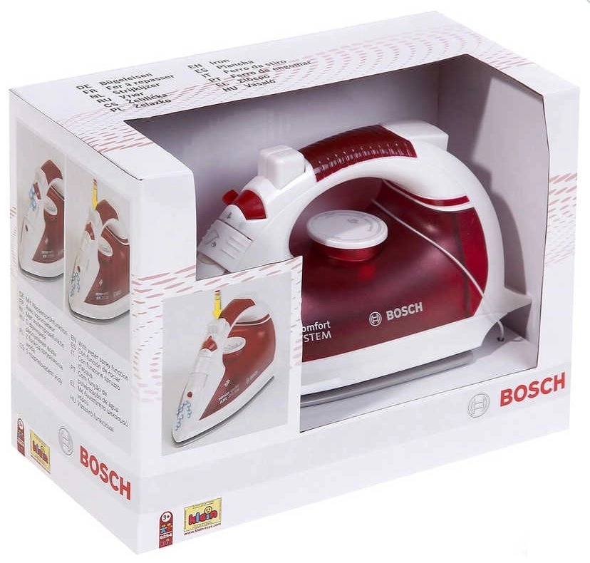 Открийте качеството на ютията Bosch, която се отличава с висококачествена пластмаса и ергономичен захват за максимален комфорт. Оборудвана е с воден резервоар и функция пръскане, което гарантира перфектно гладене. Имитиранe на реално устройство, идеална е за малки ентусиасти на гладенето.