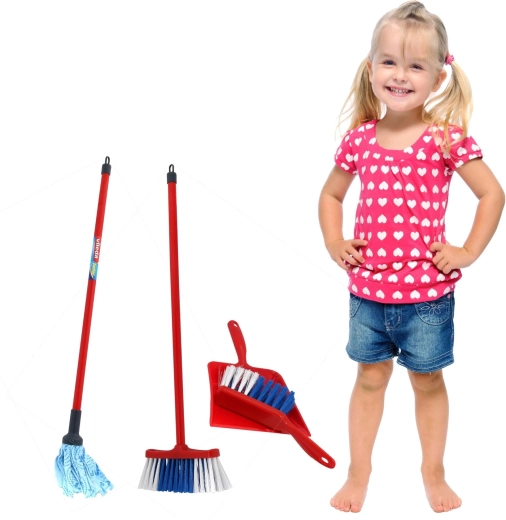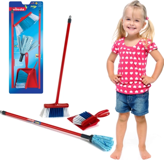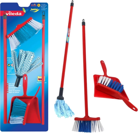 Комплектът за почистване с моп Vileda от марката KLEIN е проектиран да наподобява възможно най-вярно истинските почистващи принадлежности. Децата могат безопасно да имитират възрастните, да се включат в домашните дейности и едновременно с това да развиват фината моторика и чувството за ред. Реалистичната изработка и вниманието към детайла правят този комплект любима играчка както за момичета, така и за момчета.