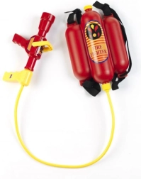 Този пожарникарски комплект е създаден за малки герои, които обичат екшън и приключения. Големият воден резервоар в типичния червен цвят с жълти детайли се носи на гърба и с помощта на маркуча и пистолета позволява на децата да „гасят пожар“ с водна струя. Благодарение на здравата конструкция и качествената пластмаса играчката е издръжлива и готова за интензивна употреба.