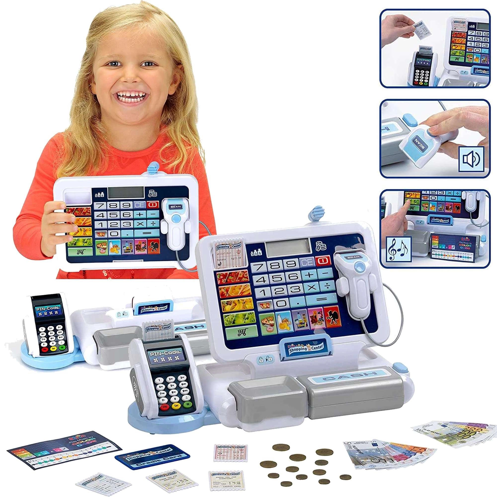 • Реалистични функции: дисплей с калкулатор, скенер, четец на карти, звуци на каса.