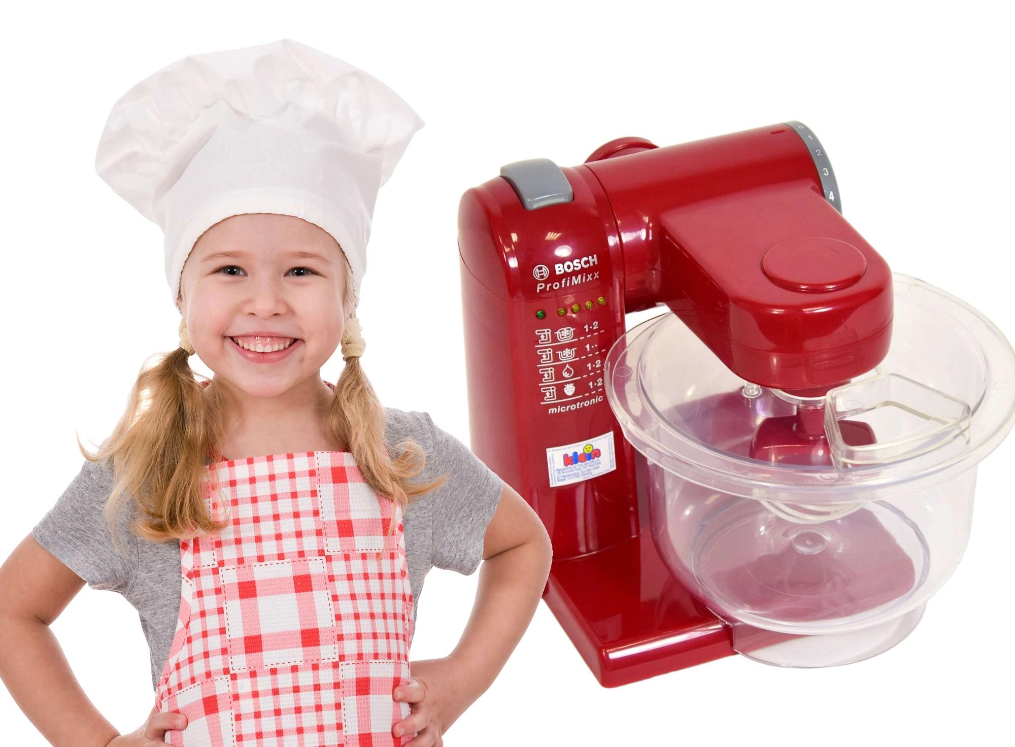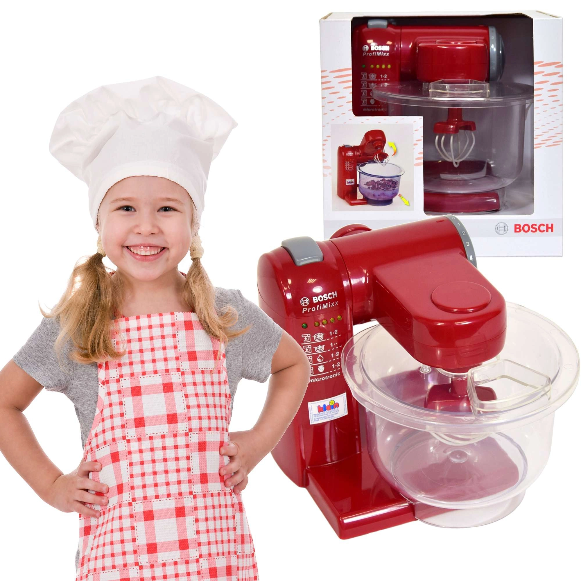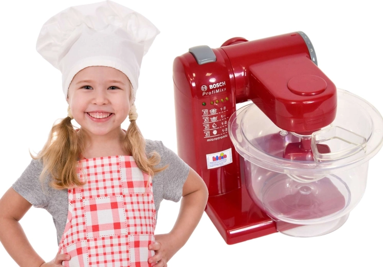 Реалистичният детски кухненски робот с лиценз BOSCH ще зарадва малките готвачи. Предлага сваляема прозрачна купа, накланящо се рамо, 2 степени на скорост и ефекти на светлина и звук. Компактният размер е идеален за детски ръчички, а безопасната пластмасова изработка насърчава креативната игра на печене и готвене.
