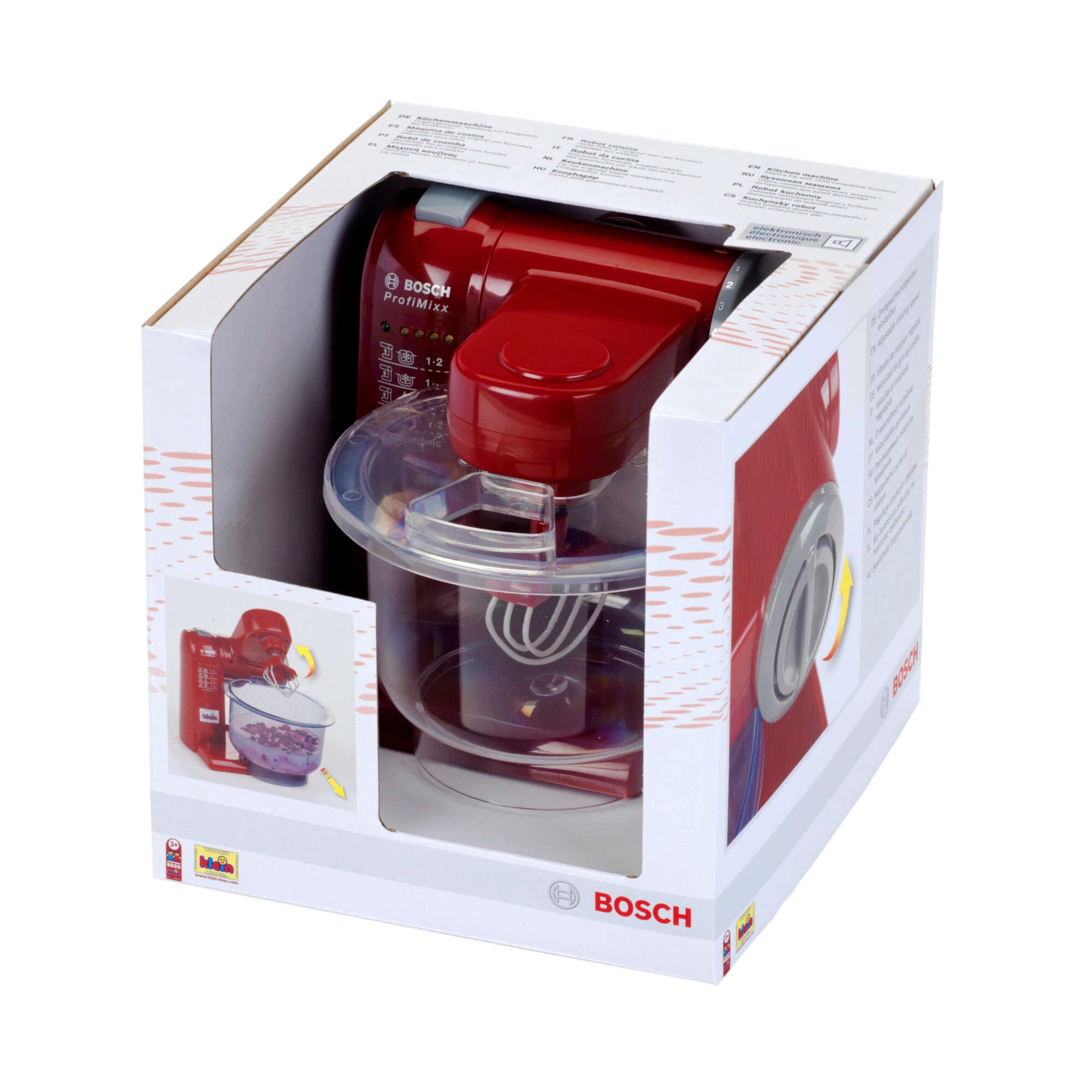Този стилен бордо кухненски робот за деца правдоподобно имитира оригиналния уред BOSCH. Благодарение на светлинните и звуковите ефекти изглежда като истински и мотивира децата да подражават на възрастните при готвене. Лекият дизайн и безопасните материали осигуряват удобно и безгрижно използване.