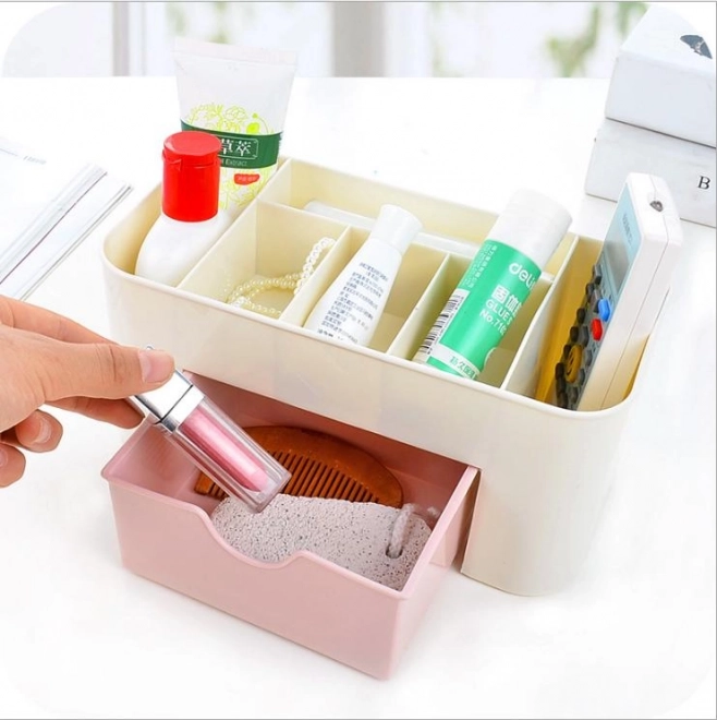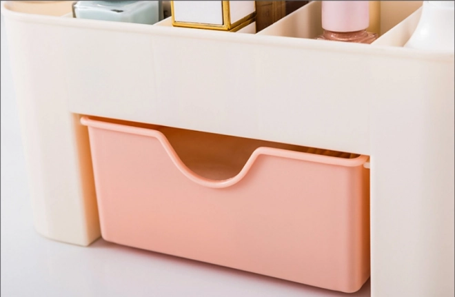 Елегантен и практичен органайзер за козметика и дребни вещи с чекмедже, който осигурява достатъчно пространство за грим и бижута. Поддържайте вещите си подредени и лесно достъпни.