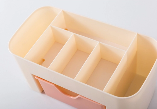 - Изчистен дизайн: Кремавият цвят на органайзера с розово чекмедже подхожда на всеки интериор.