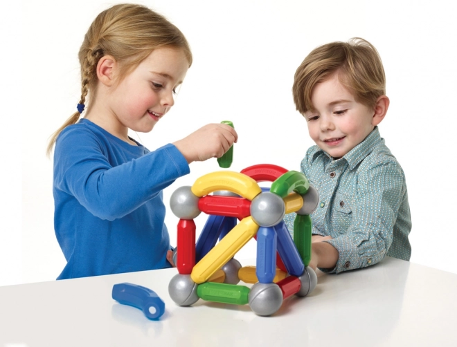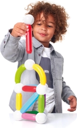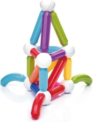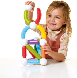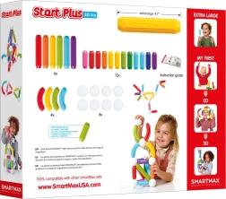 Магнитният конструктор SmartMax Start Plus е идеален избор за малки откриватели. Комплектът съдържа 30 части, включително дълги пръчки, средни пръчки, извивки и свързващи сфери, които позволяват сглобяване на прости и сложни конструкции. Децата могат да изпробват различни 2D и 3D форми и постройки като кули или мостове.
