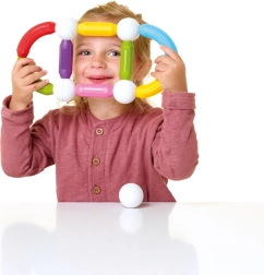 Благодарение на комбинацията от различни форми и цветове този конструктор развива творческото мислене и моторните умения на децата.