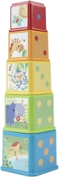 Открийте света на забавлението и ученето с Цветната сгъваема кула Fisher-Price. Тази играчка е идеална за деца от 6 месеца, които могат да изследват различни изображения и текстури върху кубчетата. Кубчетата могат да се подреждат като кула или да се вгнездяват едно в друго, което позволява безкрайни възможности за игра.