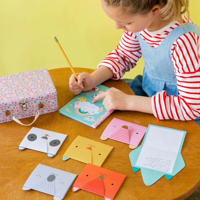 Този очарователен писмовен комплект с животни развива креативността, фината моторика и радостта от писането. Децата могат да изпращат лични послания на приятели, да украсяват дневник със стикери и да създават собствени истории. Всичко е подредено в здрав метален куфар, който се затваря сигурно с ключалка.