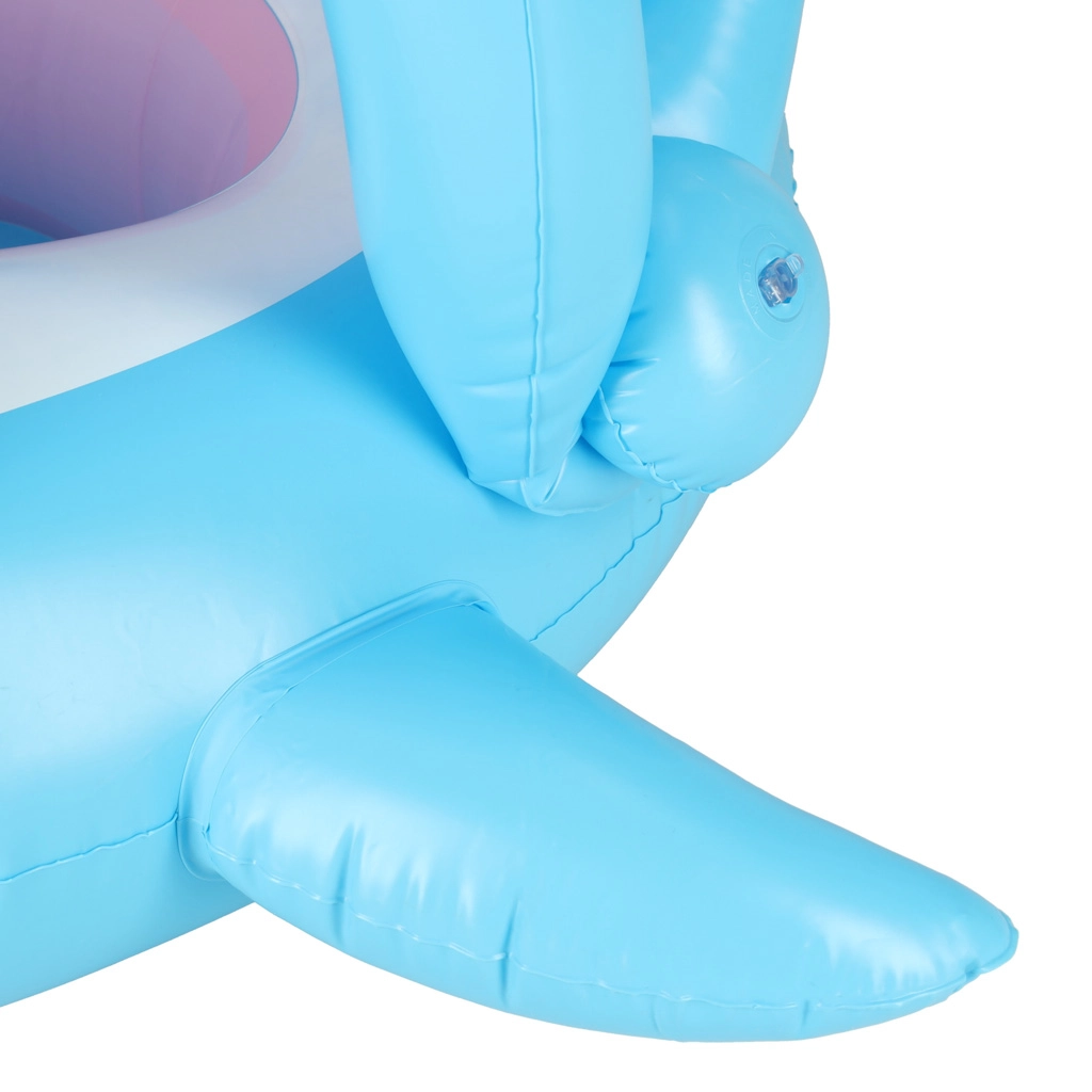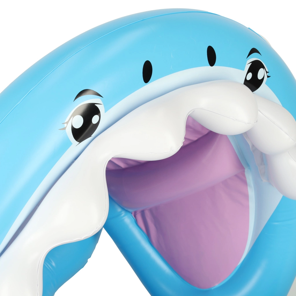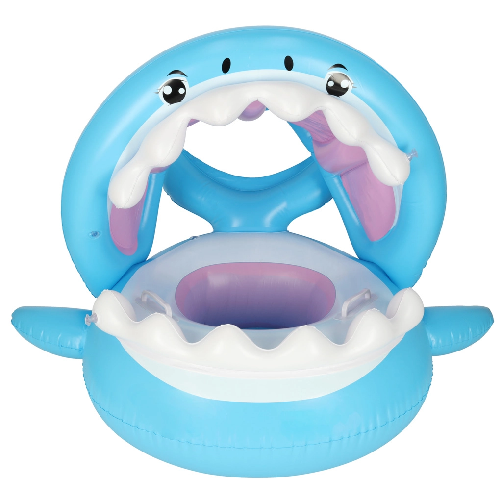 Надуваемото детско столче за вода с весел дизайн на акула е чудесно за първи запознанства с водата в басейн, река или езеро. Сваляемият балдахин предпазва от слънце, докато седалката с отвори за крачетата държи детето стабилно и удобно.