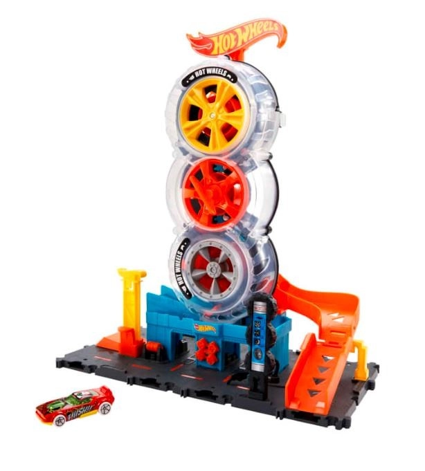 Потопете децата си в света на Hot Wheels, изпълнен с екшън и креативност. Hot Wheels Град Super Twist Автогума сервиз носи много забавление с реалистични детайли като въртящ се дисплей за гуми и ключ, който задвижва автомобилите нагоре по структурата към нови приключения.