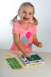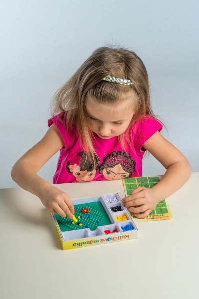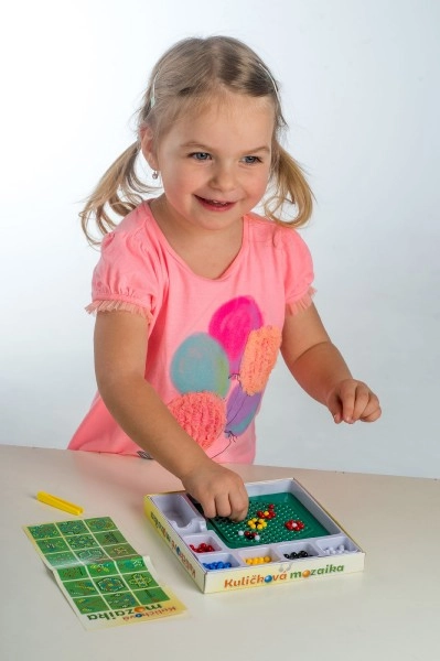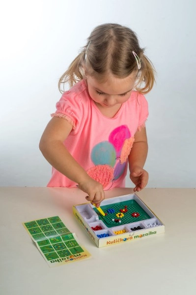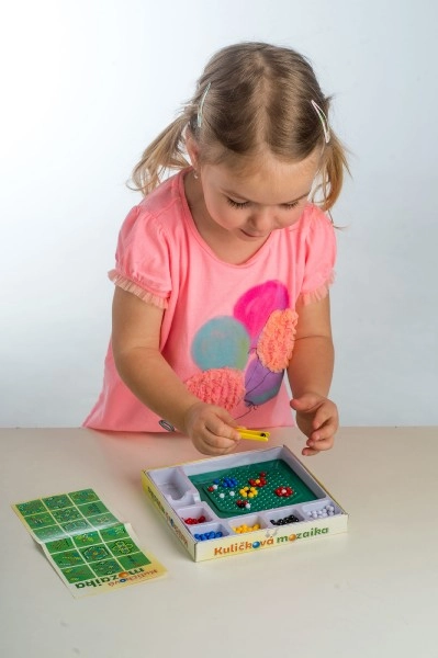 Тази мозайка е отличен избор за първи творчески опити. Децата с помощта на пинсета поставят цветните топчета върху подложката и създават както простички, така и оригинални мотиви. Активността насърчава търпението, координацията око–ръка и развитието на фината моторика.
