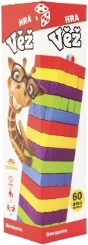 Класическата дървена кула е идеална за всички възрастови групи. С 60 цветни елемента можете да прекарате часове забавление у дома или навън.
