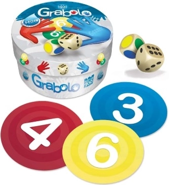 Grabolo е забавна игра за наблюдателност, която тества твоите рефлекси и памет. Подходяща е за 3 до 5 играчи и включва 36 издръжливи кръгли пластмасови карти, правила на играта и два зара – един цветен и един числов.