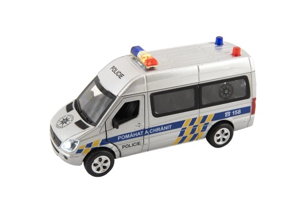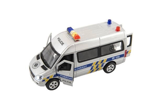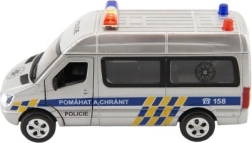Здрава полицейска количка от метал с пластмасови елементи ще зарадва всички малки пазители на реда. Предлага светлинни и звукови ефекти, механизъм на обратно навиване за бърз старт, отварящи се врати и се доставя с батерии в комплекта.